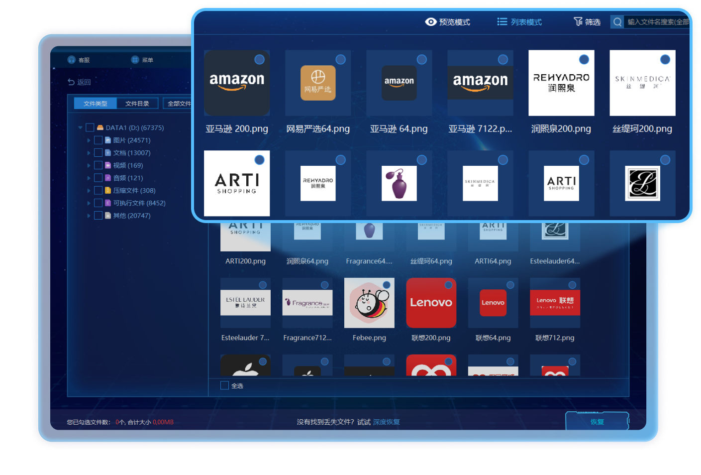 提供文件预览模式,快速轻松查找丢失数据。以可视化图像展现图片、文档等多种文件格式,方便用户快速定位丢失的文件